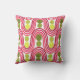 Dieses Kissen hat ein modernes Design von Cranberry Wellen und grünen Kreise.