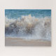 Unmögliches Rätsel mit einem Foto einer Breaking-Welle, die auf den Sandstrand stürzt