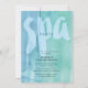 Wellness-Center-Party Einladung mit blauem und grünem Aquarell, ideal für Kinder und Erwachsene.