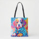 Ein buntes und niedliches Kunstdesign eines Welpen mit blauem Mantel (Dieses Design aus KI). Bestellen Sie noch heute und Embrace the Joy of Shopping!