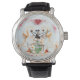 Uhr, Vintage Männeruhr mit schwarzem Lederarmband