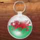 Ein Schlüsselring-Design der walisischen Flagge in einer surrealen glänzenden Glasbläserblase in einem Silberrahmen ..