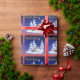 Schönes Geschenkpapier mit wunderschönem Kunstwerk Sprichwort Weltfrieden mit einem Schneemann im Wald.