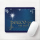 Weltfrieden im Goldskript-Schriftart gegen einen verblassenden dunkelblauen Himmel mit Verzierungen und Sternen. Vervollkommnen Sie Entwurf, um die Jahreszeit zu feiern.