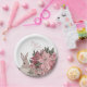 Weltfrieden Rabbit in Blume Rosa Party Teller zeigen eine originelle Abbildung eines friedlichen Hasen versteckt zwischen den Winterbeeren, Blume und Poinsettias in diesem wunderschönen Urlaubsdesign. Dieses schöne Urlaubskartenwerk macht die perfekte Urlaubskarte dieses Jahr mit einer Botschaft, die wir alle an Weihnachten hören müssen. Eleganter Text lautet "Weltfrieden, guter Wille für alle".