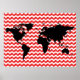 Weltkarte mit roten Zickzack Mustern Poster
