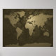 Karte der Welt in Goldtönen mit detailliertem gereiften Meeresboden und vereinfachtem poliertem Land, die einen Effekt von einem Stück Gussmetall.