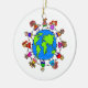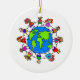 Wunderliche Illustration des niedlichen Cartoon einer Gruppe glücklicher und verschiedener kleiner Strichmännchenjungen und -mädchen, die Hände um die Welt halten. Leicht fertigen Sie besonders an und wählen Sie Ihre eigene Hintergrundfarbe oder addieren Sie Text. Bild verfügbar auf verschiedenen Geschenken und Produkten.