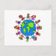 Niedlicher Cartoon skurrile Illustration einer Gruppe glücklicher und vielfältiger kleiner Strichmännchen Jungs und Mädchen, die Händchen auf der ganzen Welt halten. Einfach anpassen und Ihre eigene Hintergrundfarbe auswählen oder Text hinzufügen. Bilder auf verschiedenen Geschenken und Produkten erhältlich.