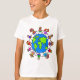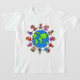 Wunderliche Illustration des niedlichen Cartoon einer Gruppe glücklicher und verschiedener kleiner Strichmännchenjungen und -mädchen, die Hände um die Welt halten. Leicht fertigen Sie besonders an und wählen Sie Ihre eigene Hintergrundfarbe oder addieren Sie Text. Bild verfügbar auf verschiedenen Geschenken und Produkten.