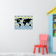 Eine schwarze Weltkarte auf einem großen Zickzack-Hintergrund mit Kompass-Rose