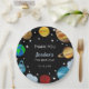 Planets Thema Galaxie Jungen Geburtstag personalisierten Papier Teller. Entworfen und illustriert von Kristine Lee www.kristineleedesigns.com
