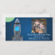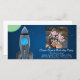 Feiern Sie den Geburtstag oder besondere Anlass des Jungen mit diesem coolen Raumschiff im Weltraum. Dunkelblauer Himmel mit Sternen und farbenfrohen Planeten und eine silberne Rakete, die durch den Himmel schießt. Farblich und hell. Copyright © 2012 www.CustomInvitesOnline.com