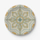 Eine Chariklia Zarris Schaffung, dieser Weltsdruck bietet ein dekoratives Fliesenmuster mit Blau und Gold auf einem beige Hintergrund an. Würde ein großes Geschenk für Fans der Blumen und der Pastelldrucke machen!