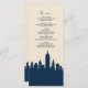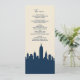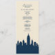 Weltweite Skyline Liebe Story Hochzeit in Urlaubsort - Programm und Menü auf einer Karte Dieses Hochzeitsprogramm verwendet eine marineblaue Skyline auf Elfenbein, führt die Gäste durch Ihre Zeremonie mit Stil auf der einen Seite und auf der anderen Seite können Sie Ihre Dinner-Menü anpassen. Die elegante Silhouette spiegelt weltweite Romantik, kosmopolitische Eleganz und die zeitlose Schönheit berühmter Skylines wider. Koordinieren Sie es mit anderen passenden Stücken für ein einheitliches Aussehen. AI-unterstütztes Design - Ich kann eine kleine Provision von Social Media-Bewerbungen verdienen, ohne dass Ihnen dadurch zusätzliche Kosten entstehen.