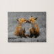 Zwei entzückende Babyfüchse, die einen süßen Kuss teilen. Weicher orange Farbton auf einem Schwarzweiss-Hintergrund.
