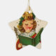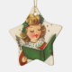 Wenig blonder Engel kleidete im Rot mit grünem Stechpalmen-Blätter in ihrem Haar an. Sie hat einen offenen grünen Songbook in ihren Händen und singt