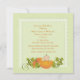 Diese süße Einladung ist für eine Herbst-Babyparty oder jederzeit vom Jahr perfekt. Der quadratische Entwurf hat ein empfindliches Damastmuster und wird mit einer Weiß ausgebogten Gazeplatte bedeckt. Ein Kürbis, stillstehend auf seinen Reben, ist heraus geschnitzt worden, um Raum zu machen, damit ein entzückendes kleines Baby herein sitzt. Der Selleriegrünfarbton ist für jedes Geschlecht passend.