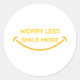 Weniger Sorge, Lächeln gelblicher Text-Design Runder Aufkleber