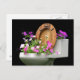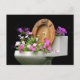 Humores Foto Postkarte. Wenn das Leben kacke, machen Dünger. Bereit, recycle, etc. Petunias wachsen in einer alten Toilette
