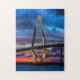Ein kunstvolles Foto der Arthur-Ravenel-Brücke von Charleston South Carolina, das sich bei einem späten Sonnenuntergang ereignet hat. Macht ein tolles Andenken, wenn Sie oder jemand, den Sie kennen, dort gereist sind. Suchen Sie weitere Drucke oder Produkte? Fühlen Sie sich frei, um meinen Laden zu besuchen: http://www.zazzle.com/timelessmomentsphtgy Dieses Foto wurde von Jennifer White mit Timeless Moments Fotografy aufgenommen. Alle Bilder sind urheberrechtlich geschützt © Timeless Moments Fotografy/Jennifer White. Alle Rechte vorbehalten.