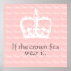 Dieser niedliche Ausdruck weist eine weiße Krone auf einem rot-rosa "Prinzessin"-Musterhintergrund auf und den Text "Wenn die Krone passt, trägt sie".