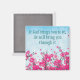 Zitat-Magnete; dieser inspirierende Anführungsmagnet weist rosa Blume und blauen Hintergrund mit dem Zitat auf: "Wenn Gott dich dazu bringt, bringt Er dich durch ihn." Inspiration, Dekoration und Motivation.