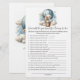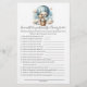 Abenteuer thematisch, "How Well Do you know the Mommy To Be", Babyduschspielkarte mit einem hübschen weißen Welpe, der einen Teddybär in einem blauen Heißluftballon hält. Der blau-blaue Himmel hat weiße Wolken mit umliegenden goldenen Sternen. Vorlagen auf der Rückseite.