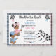 Humorvolle Gender-Einladung in einem Rennthema mit Mädchen & Jungen, die Rennfahnen halten, die auf ihrem Geschlecht für die Ziellinie jubeln! Rosa, blau, schwarz und weiß kariert.