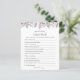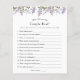 Brautparty-Spielkarte mit Aquarell und violetten Blumen. Eine unterhaltsame Art, mit Duschgästen zu interagieren.