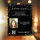 Personnalisez et ajoutez votre entreprise, nom, adresse, texte, photo, votre propre code QR à votre site Web. Arrière - plan noir, texte blanc. Décoré avec des étincelles de parties scintillant en faux or.