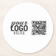 Werbefirmenlogo und QR-Code Runder Pappuntersetzer