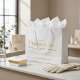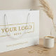 Mit Ihrem Firmenlogo und Geschäftsinformationen personalisieren Sie diese Papiertasche ganz einfach. Werbegeschenktaschen, die mit Ihrem Firmenlogo versehen sind, fügen Ihren Geschenken, Geschenken und Einkaufstaschen eine berufliche Touch hinzu. Setzen Sie die Anpassung des Brandings auf die nächste Stufe, indem Sie eine Hintergrundfarbe auswählen, die Ihrer Markenfarbe entspricht.