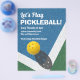 Pickleball Flyer mit "Let's Play Pickleball" und Ihre persönlichen Event-Informationen auf einem Pickleball-Court Hintergrund. Bearbeiten Sie jede Textzeile zu Ihren eigenen Informationen.