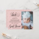Moderne Foto Führer Elternvorschau-Karte. Design zeigt Single Foto des Babys auf einem glänzenden goldenen Hintergrund der Rose, Typografie Drehbuch ''Tante'' und Führer Elternteil in trendiger Kalligrafie Schrift. Personalisieren Sie weiter mit Namen und Nachricht.