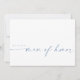 Dieses minimalistische Design ist perfekt für die moderne Braut! Mit einem handgeschriebenen Signaturskript gepaart mit einem einfachen serifenlosen Schriftart in staubblauer Farbe für einen subtilen Pop. Personalisieren Sie Ihre eigene Nachricht auf der Rückseite, oder bestellen Sie sie leer und schreiben Sie Ihre Nachricht handschriftlich. Karo in den Laden, um Bridesmaid, Trauzeugin und Matron of Ehrenkarten zu finden!