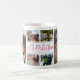 Moderne Tasse für Bräunungsgeschenke mit einem 6-Foto-Collage-Template, dem Wort "wirst du meine Bridesmaid sein?" in einem niedlichen rosa Farbverlauf-Schriftart und einer Textvorlage, die du personalisieren kannst.