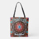 Stil: Allround-Over-Print-Tote-Beutel, mittlere Abmessungen: 16 Zoll x 16 Zoll, Strap: 28"l Material: Außenfassend: 100% robustes Polyester Innenausstattung: 100% Polyester-Vliesstoff Laminat 100% Baumwollgriffe bedruckt, dann für Randdesign Schwarz laminiert für extra Unterstützung Nur Spot oder trocken Made in the USA