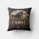 Ein beeindruckendes Kunstwerk mit einem schwarzen Pferd mit einer rustikalen Stallkulisse, die mit Western-Elementen und dem Namen Carol hervorgehoben dargestellt ist.