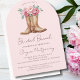This Pink Floral Cowgirl Elegant Arch Invitation features a beautiful watercolor illustration of worn leather cowboy boots surrounded by soft pink peonies, symbolizing love, joy, and a touch of country glam. The gentle pastel pink background and arched card shape add modern sophistication, while the delicate script “Bridal Brunch” headline sets the tone for a joyful, champagne-filled celebration.