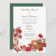 Voici une jolie faire-part de mariage à thème occidental qui présente des roses rouge vif. Une image brillante à l'avant du bas contient une botte occidentale décorée de rose, remplie de roses roses et rouges, un bouquet de roses, un casquette de cowboy marron, et des pétales rose et rose éparpillés parmi eux. Au-dessus de l'image se trouve votre texte de mariage personnalisé en vert turquoise foncé et marron. Les images et le texte sont placés sur un arrière - plan blanc. Le verso de l'invitation correspond au vert turquoise. Élégant et festif !