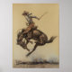 Will James war ein kanadisch-amerikanischer Künstler und Schriftsteller und veröffentlichte zahlreiche Cowboy-Geschichten für Erwachsene und Kinder. Sein Kunstwerk, in der Tradition Charles Russells, illustriert seine beliebten Bücher. Dieses Gemälde ist "Bucking Horse".