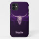 Western Bull Kuh Schädel Land cowgirl individuelle Name Handy Gehäuse. Lila Bauernhaus im Vintagen Stil. Rustikales altes Wildwest Rodeo inspirierte Kunst. Cooles, trendiges, modernes Bauerndesign. Bildrecht Marg Seregelyi Fotografie.