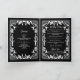 Ein modernes Cowboy-Cowgirl-Design mit handgezeichneten Elementen eines Kuhschädels, Hufeisen, Blumen- und Kaktusschmuck. Schwarz-Weiß Blumenrahmen Hochzeitsdesign mit handgezogenen Blumen, Kakteen, Kuhschädel und Hufeisen. Dieses zeitgenössische, moderne Western Country Hochzeitsdesign ist ideal für alle Jahreszeiten. Ein elegantes, schwarz-weißes Ranch-, Bauernhof- oder Scheunendesign mit handgezeichneten Illustrationen. Ein Western Country Cowboy themed Hochzeitsorder Service-Card-Design mit modernen eleganten Elementen. Auch die passenden Hochzeitseinladungen und andere Schreibwaren sind verfügbar.