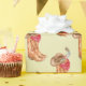 Das gemusterte Wickelpapier mit dem Thema Western bietet ein Paar Cowboystiefel mit Revolver und roter Bandana auf hellem Hintergrund