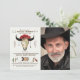 Eine schöne, Hand-gezeichnete, Watercoloreinladung mit einem Westernthema, das einen Kuhschädel kennzeichnet, Pfeile, Federn und indischen Elemente. Einfach addieren Sie Ihr Foto und personifizieren Sie, um es Ihr zu machen. (<a href='http://www.freepik.com/free-vector/watercolor-pack-of-ethnic-elements_1075989.htm'>Entworfen durch Freepik</a>). <br/><br/>Die Karte ist einfach, mit Ihrer Benennung, Schriftart, Schriftartfarbe und Wahl von sechs Papiersorten besonders anzufertigen<br/><br/>Nicht genau was suchen Sie? Alle unsere Produkte können kundenspezifisch angefertigt werden, um Ihren Bedarf an keiner Extragebühr zu erfüllen<br/><br/>Treten Sie mit uns einfach bei heartfelthelper@gmail.com in Verbindung<br/><br/>Koordinierenprodukte verfügbar: Western-Element-Foto-Einladung