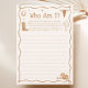 Ajoutez un peu de plaisir à votre fête avec cette carte de jeu Guess Who Personnalisée Western Fête des mariées Guess Who Game Card! Parfait pour les bottes et les idées de douches nuptiales mousseuses, cette carte de jeu est un incontournable pour les idées de douches nuptiales occidentales, les idées de douches nuptiales country et les idées de douches nuptiales boho. Que vous planifiez des idées de douches nuptiales de pays ou des idées de douches nuptiales de cowgirl, ce jeu Guess Who unique va divertir vos invités et créer des souvenirs inoubliables à votre douche nuptiale.