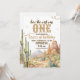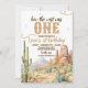 A western-themed first birthday invitation featuring desert landscapes, cacti, rope details, and rustic typography. Designed for a “How the West Was One” celebration, this invite sets the tone for a stylish cowboy or wild west birthday party. Perfect for boys’ first birthdays and western-inspired event themes.