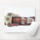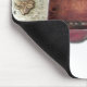 Ein Mauspad mit einem Bild eines sterling silbernen Western-Cowboygurtschnalle und einem abgetragenen Patina-Ledergürtel