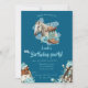 This birthday invitation features a western horse watercolor design with soft floral details and classic cowgirl elements, including cowgirl boots and a cowgirl hat. The rich navy background paired with turquoise and neutral tones creates an elegant western look that’s perfect for a horse birthday party.